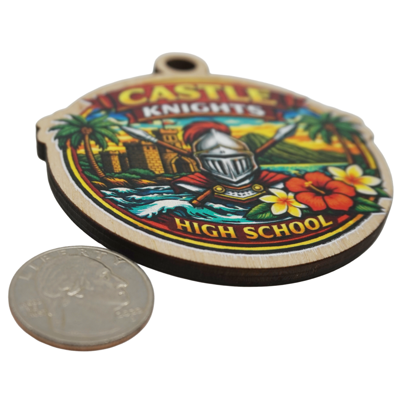 Celebrate Castle High School pride with this bold, Hawaiʻi-inspired Knights wooden keepsake ornament. Featuring the iconic knight helmet, castle imagery, tropical scenery, and island florals, this piece is designed for students, alumni, families, and fans who want a lasting reminder of their Castle Knights legacy.