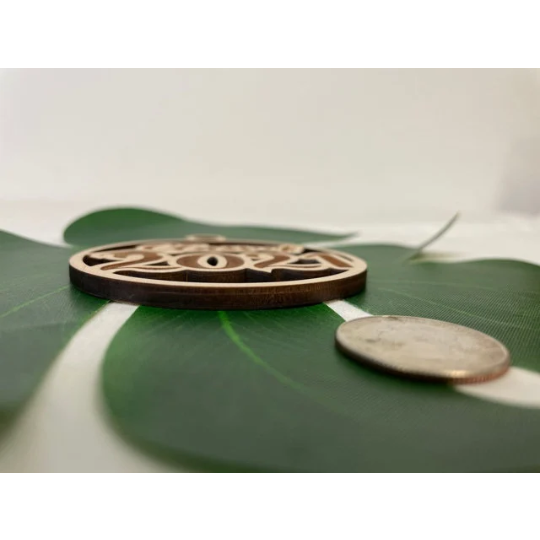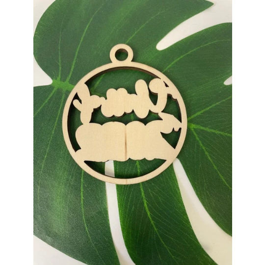 Etched and hand sanded on a 1/4" thick Birch plywood, this sturdy wood ornament features the words