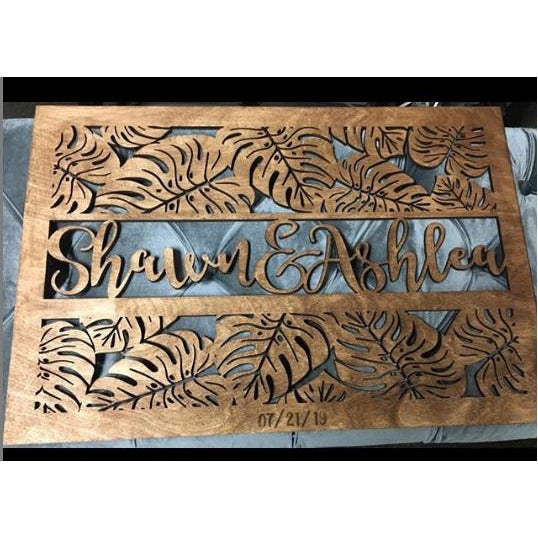 CUSTOM Plaque with Monstera Leaf design. Perfect gift idea for an Anniversary, Birthday, Wedding gift or housewarming party!