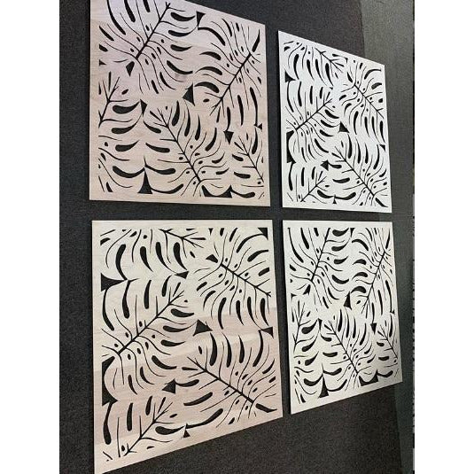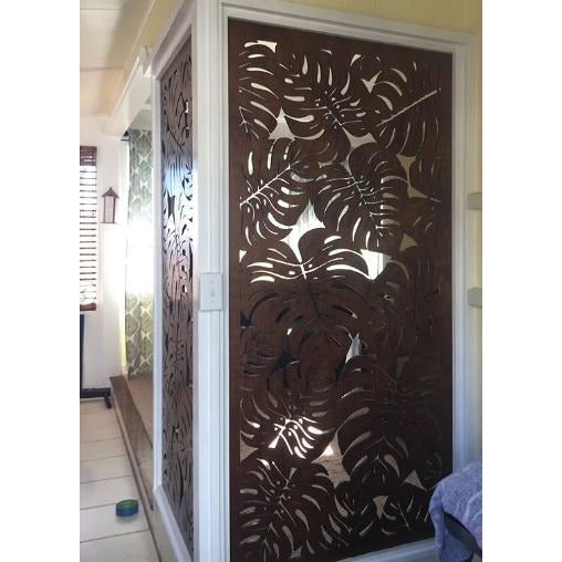 CUSTOM Panels to fit your home, design includes scattered Monstera leaves.