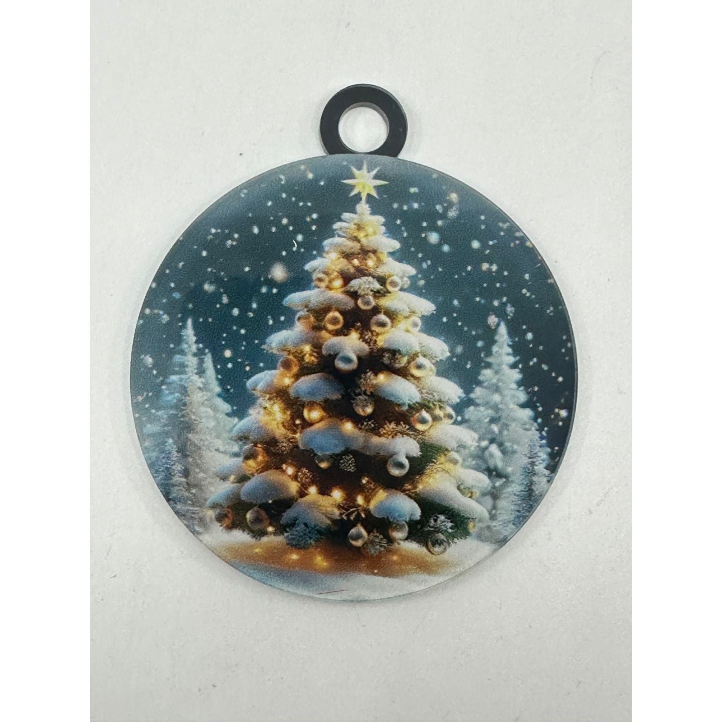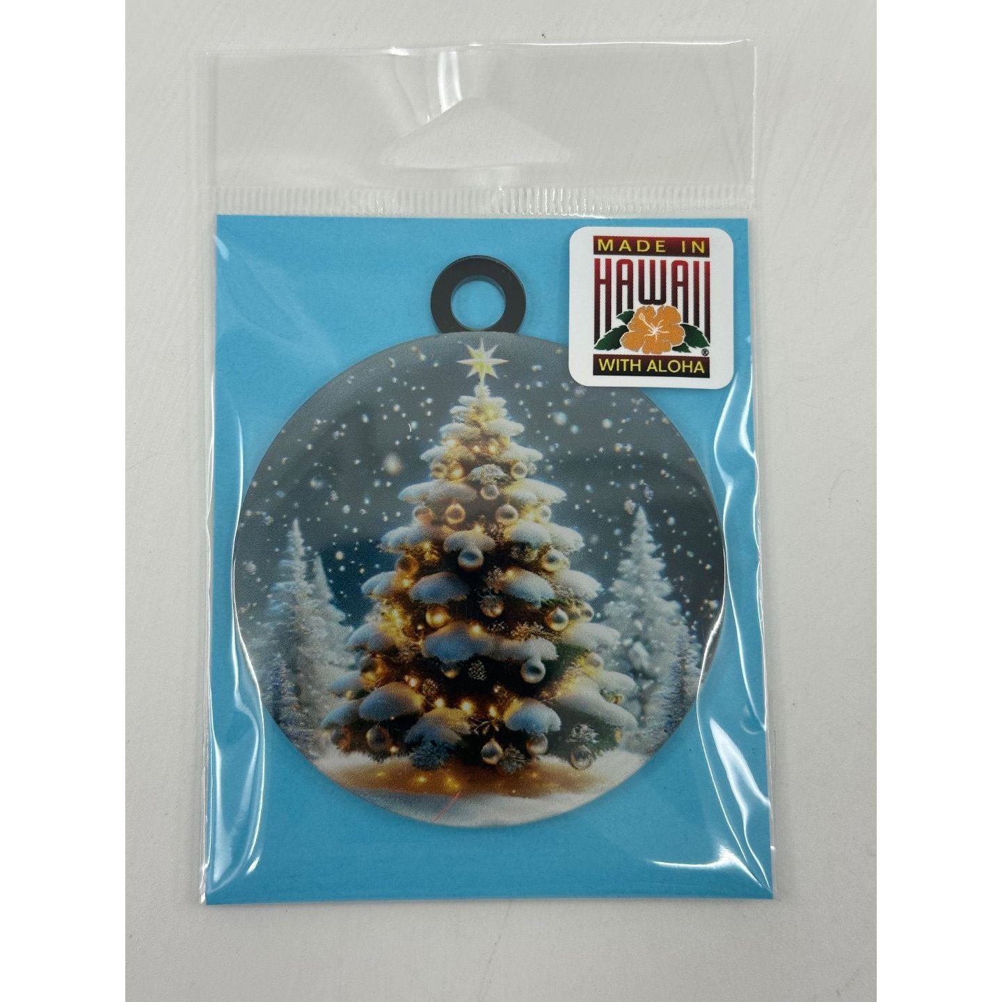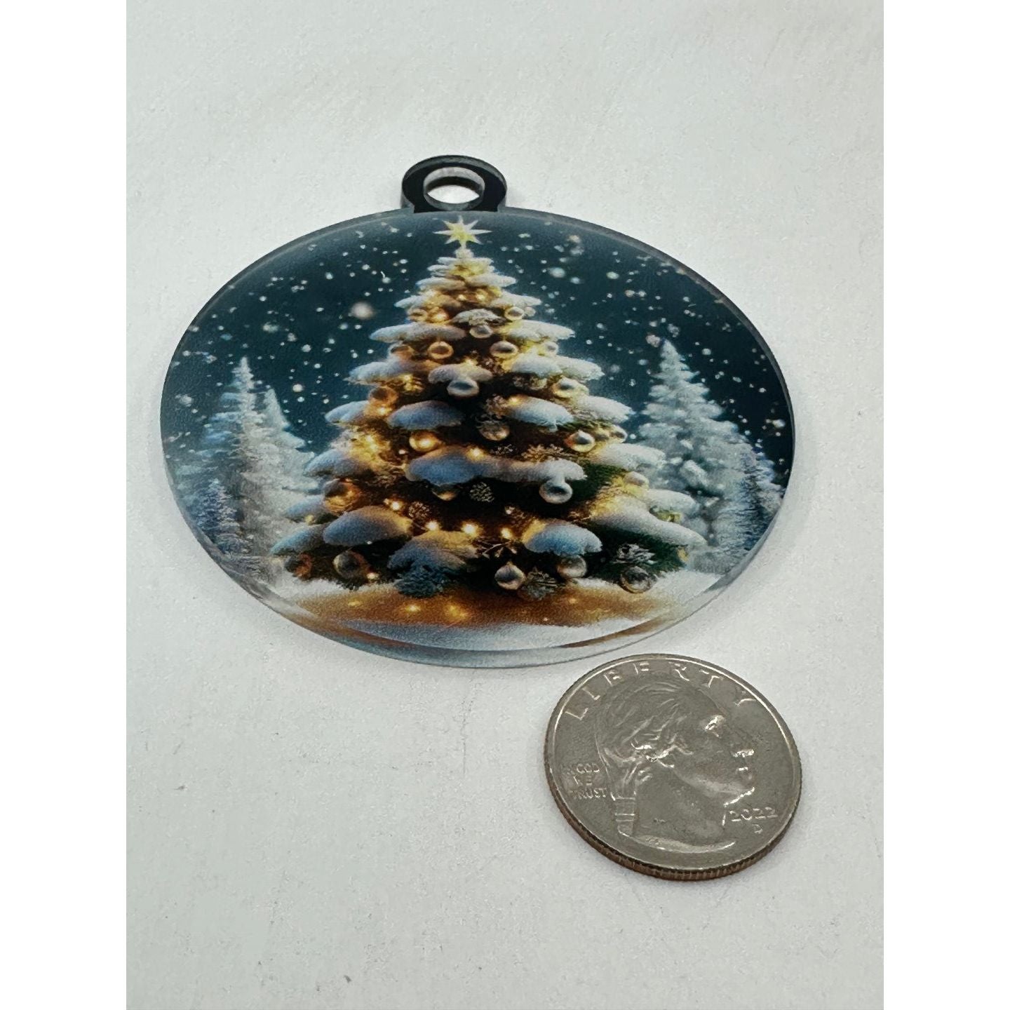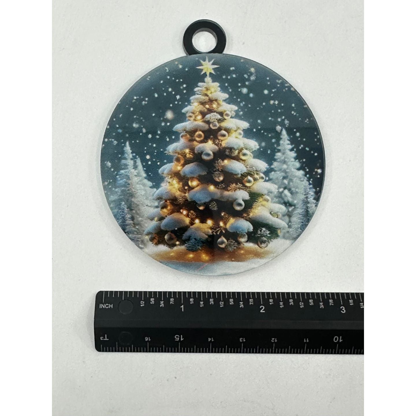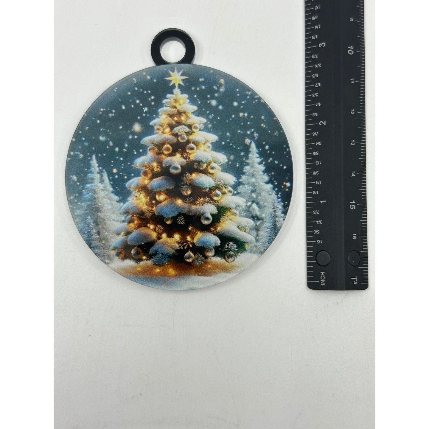 High-Quality Acrylic Design: The ornament is crafted with durable acrylic that features a snow-covered Christmas tree with golden ornaments and a shining star at the top.