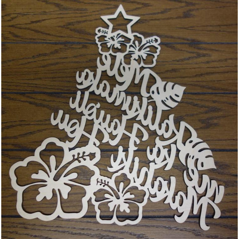 Laser Cut Mele Kalikimaka me ka Hauoli Makahiki Hou Tree Door Hanger
