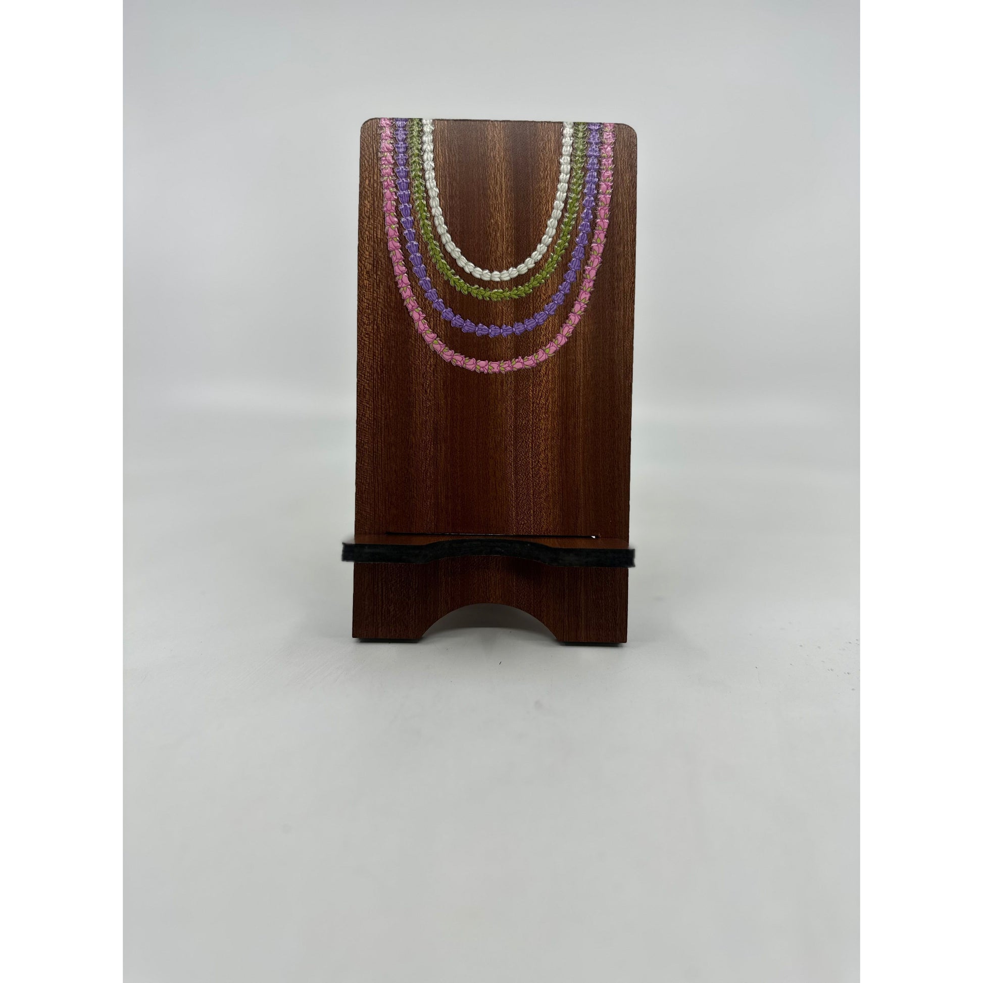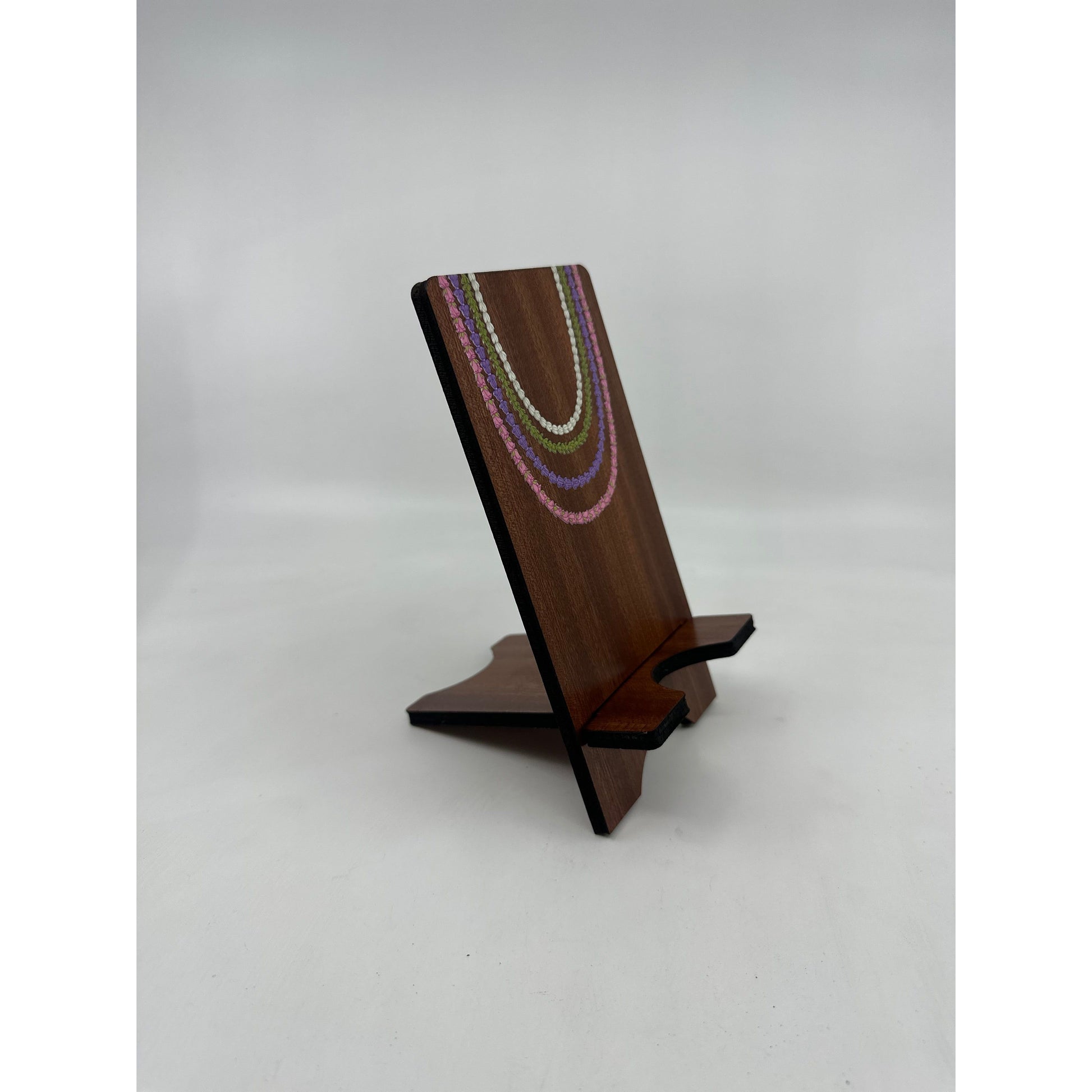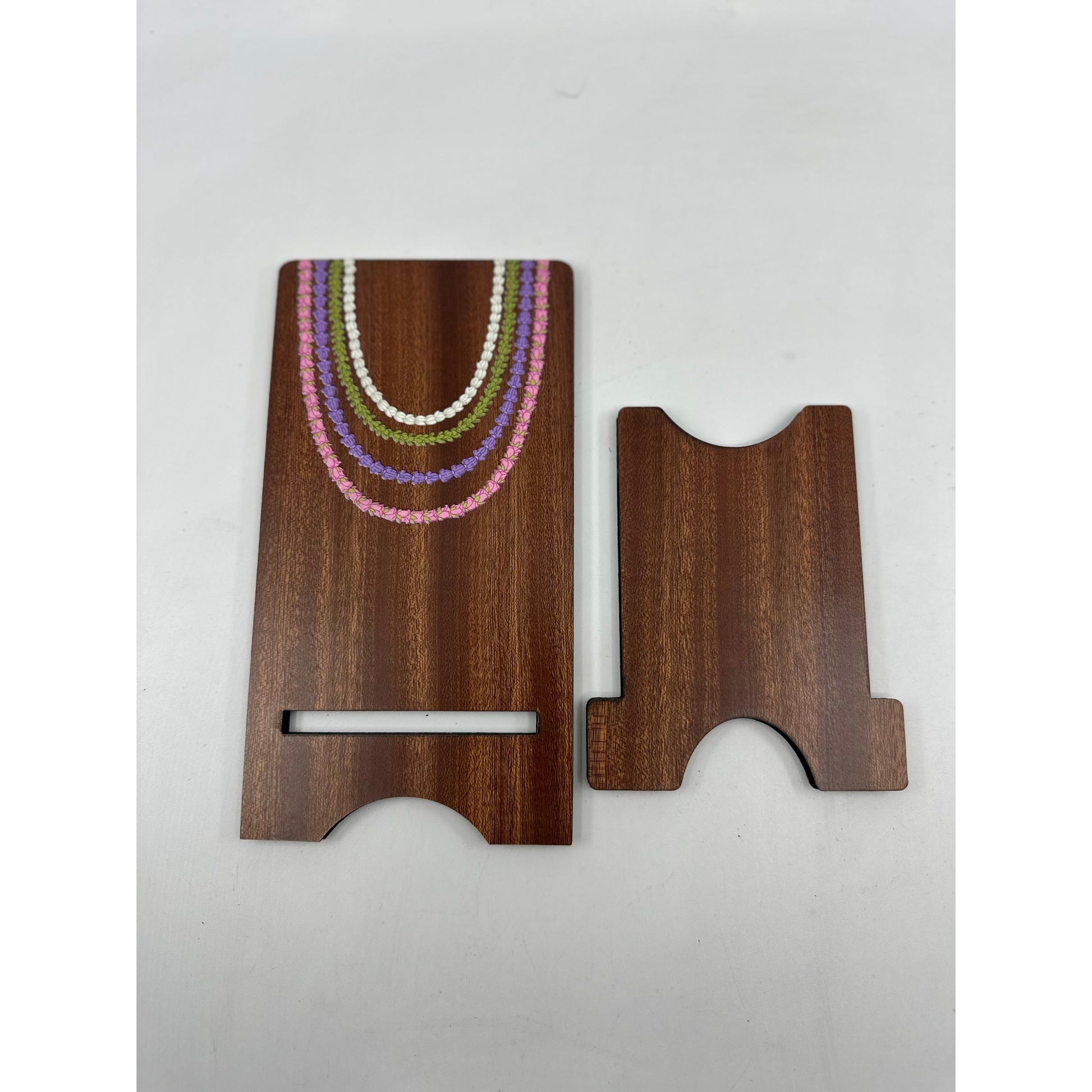 Bring island vibes to your workspace with our laser cut sapele plywood phone stand, featuring a UV-printed lei design inspired by traditional Hawaiian floral lei.