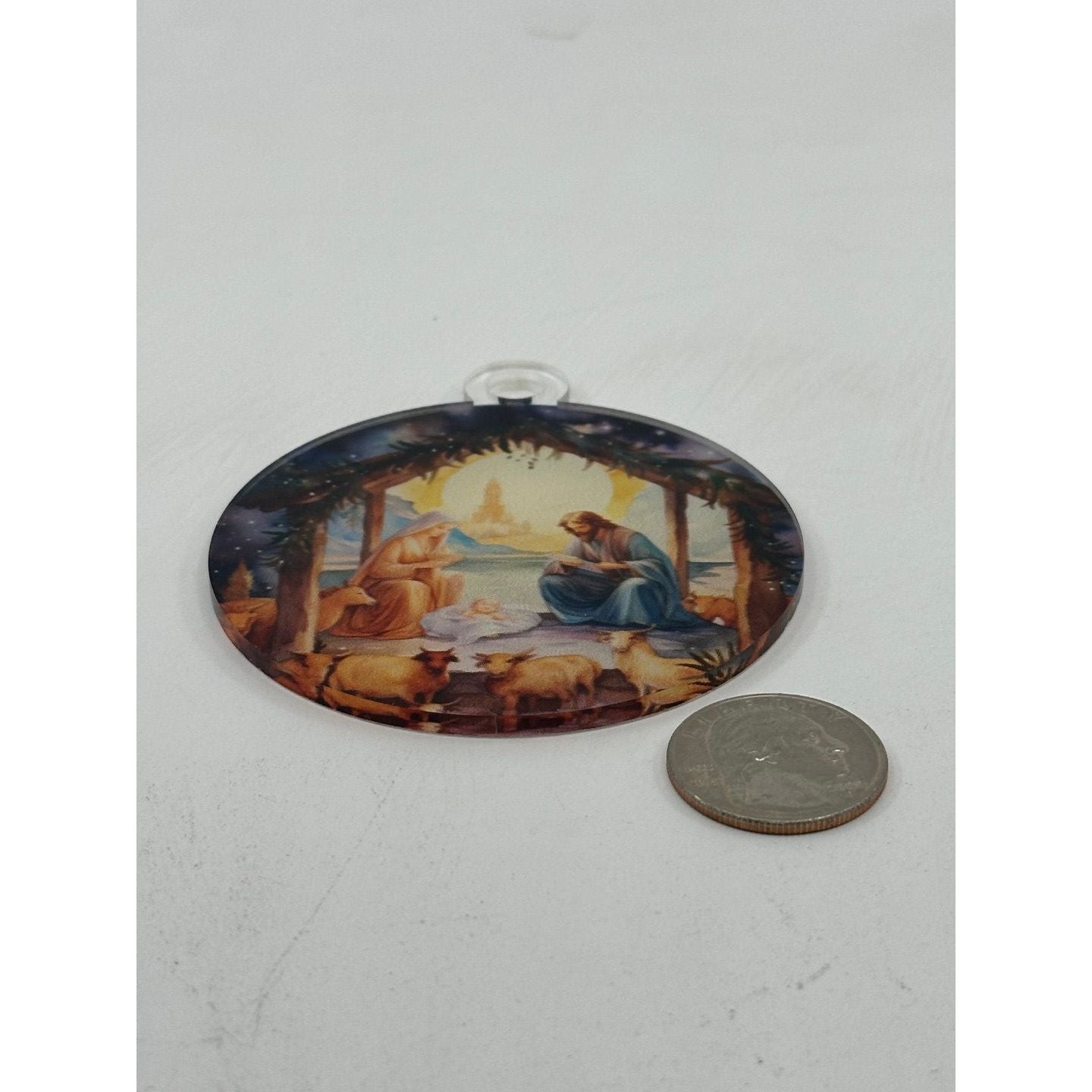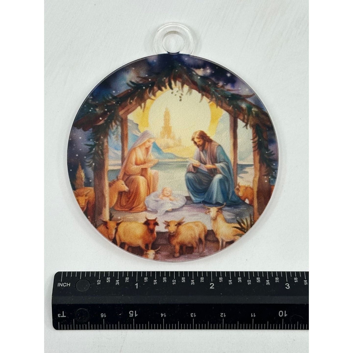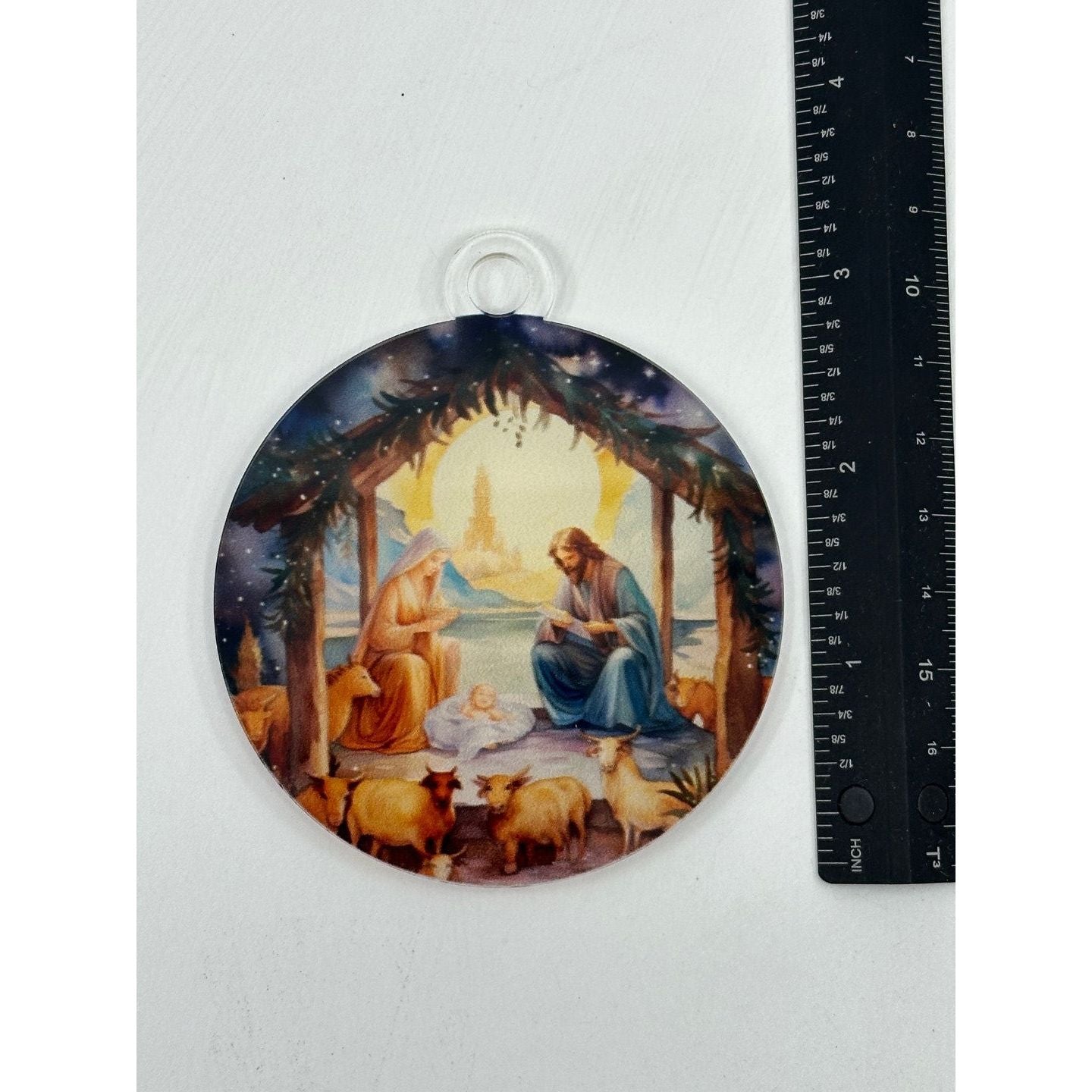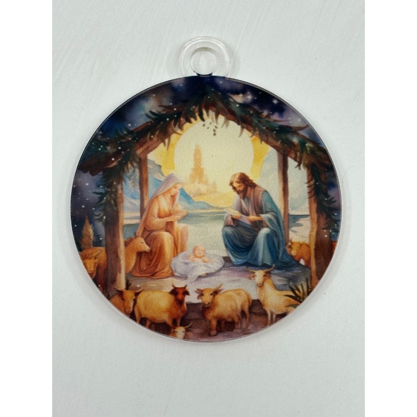 - High-Quality Acrylic Design: The ornament is crafted with durable acrylic that showcases the nativity scene in vibrant, detailed colors.