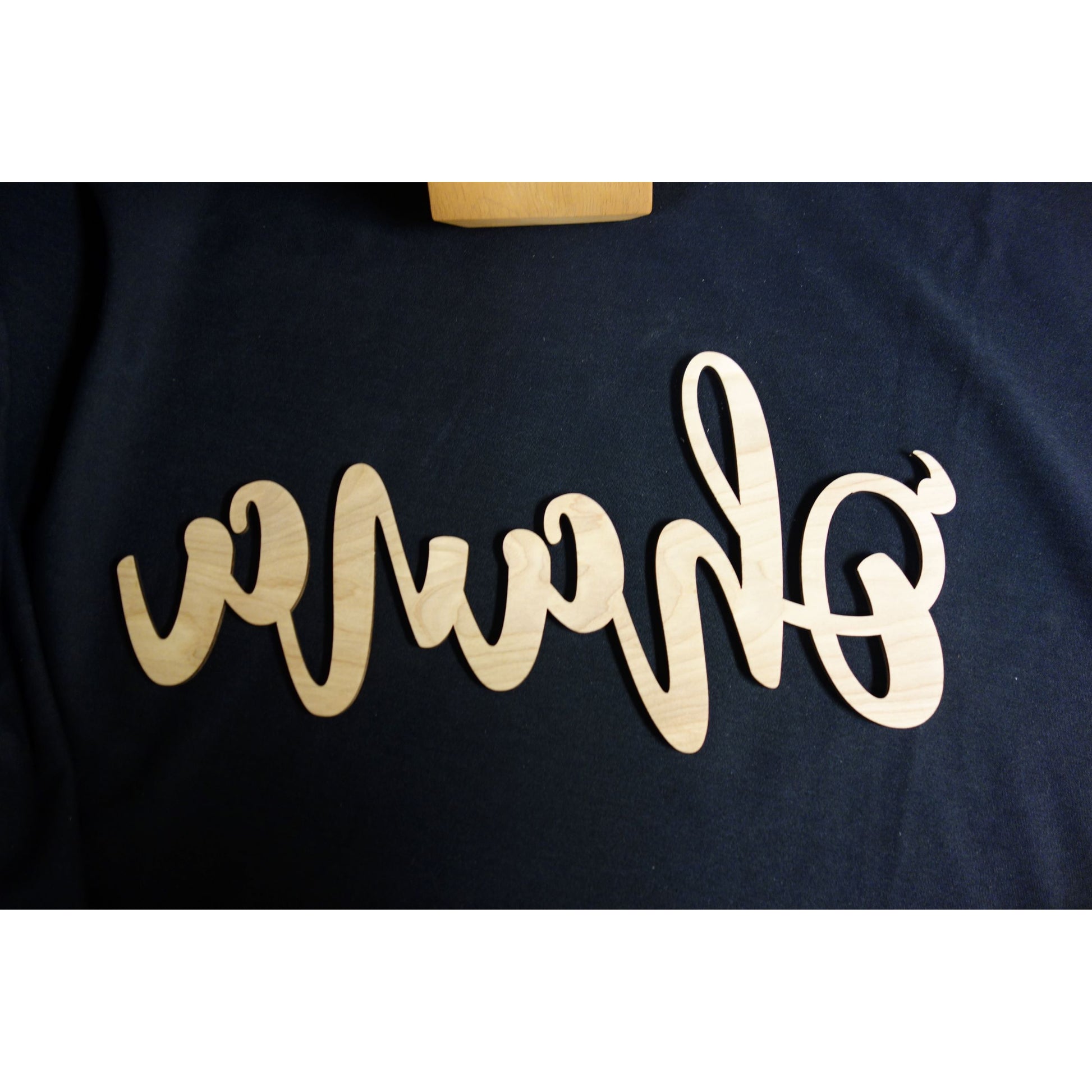 Laser cut wood sign featuring the Hawaiian word for family, which is `Ohana.
