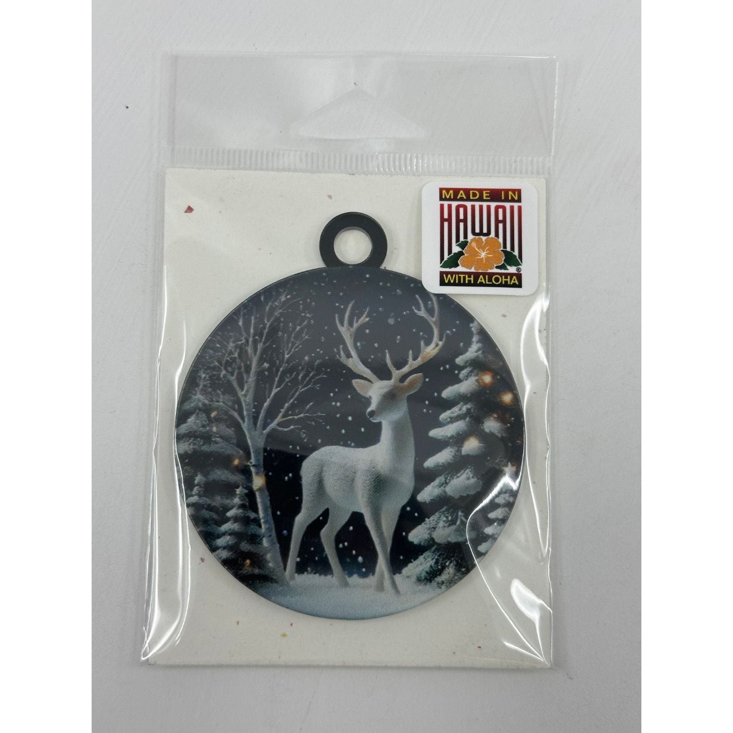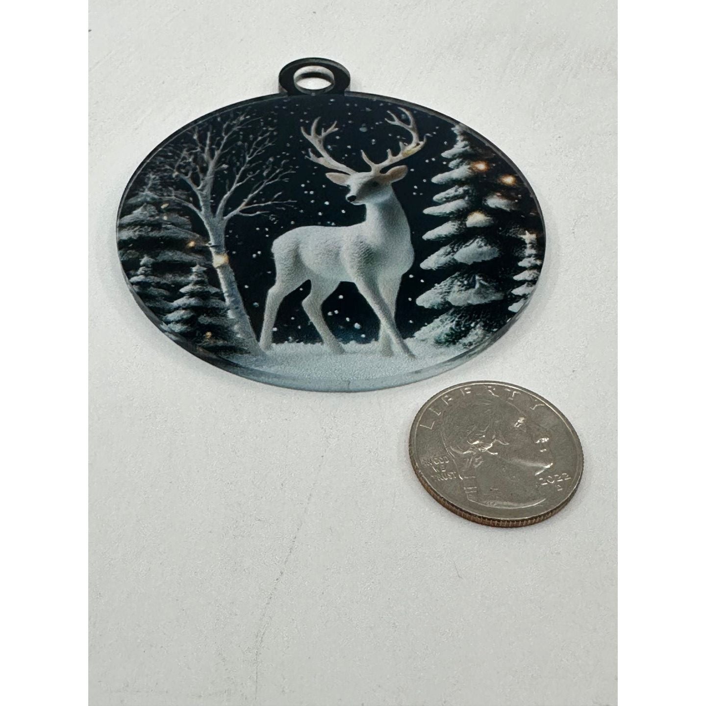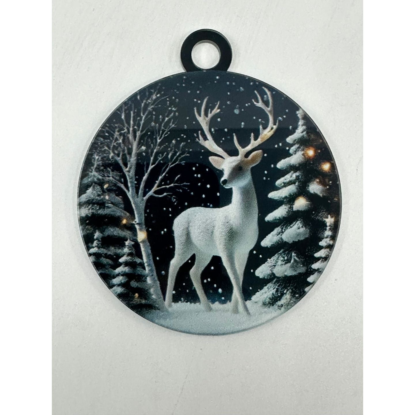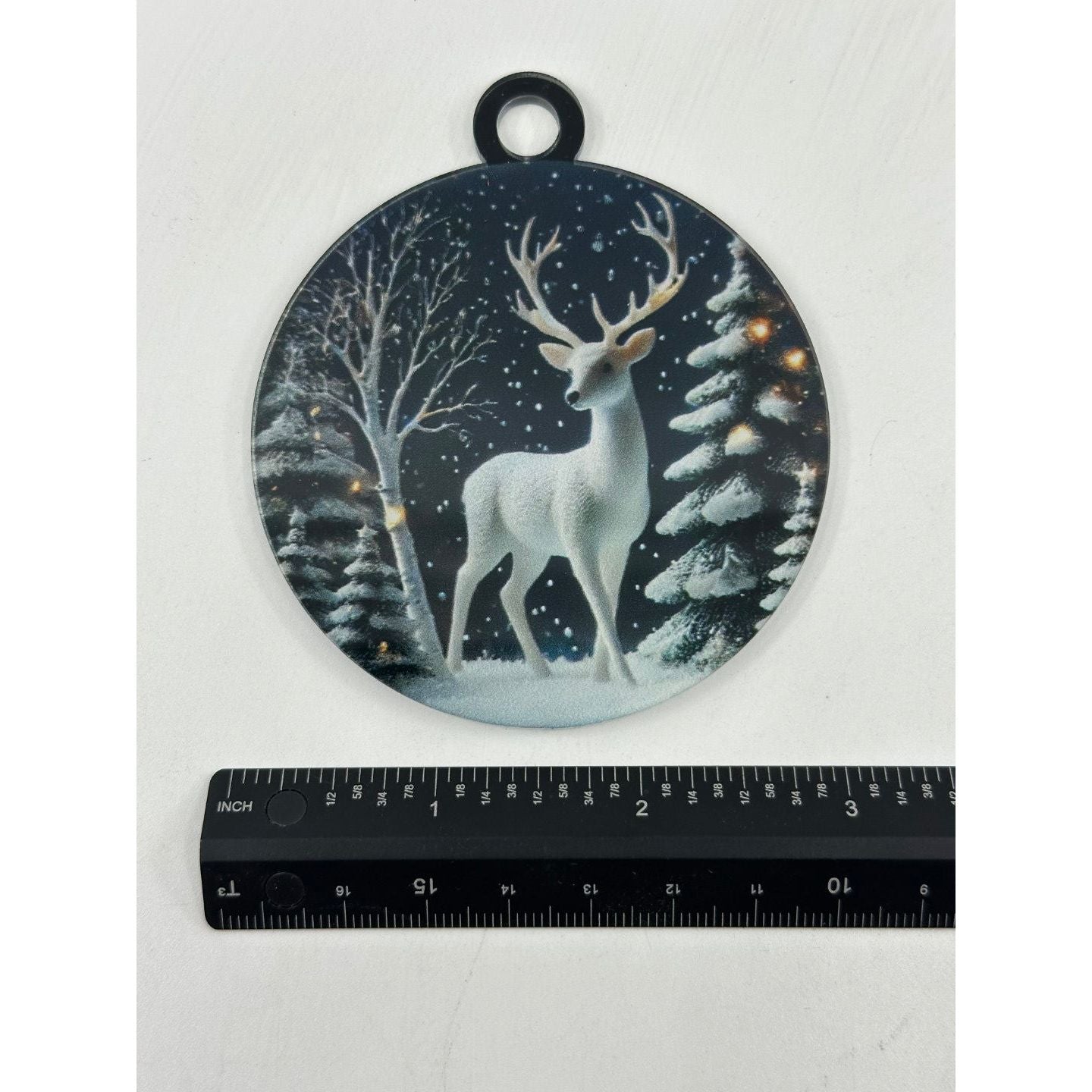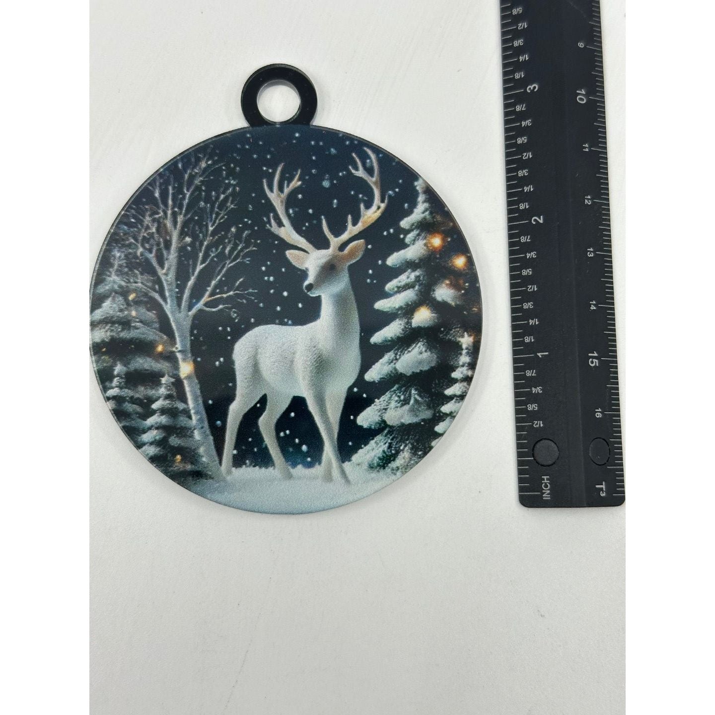 High-Quality Acrylic Design: The ornament is crafted with durable acrylic that features a majestic white reindeer surrounded by snowy trees and twinkling lights.